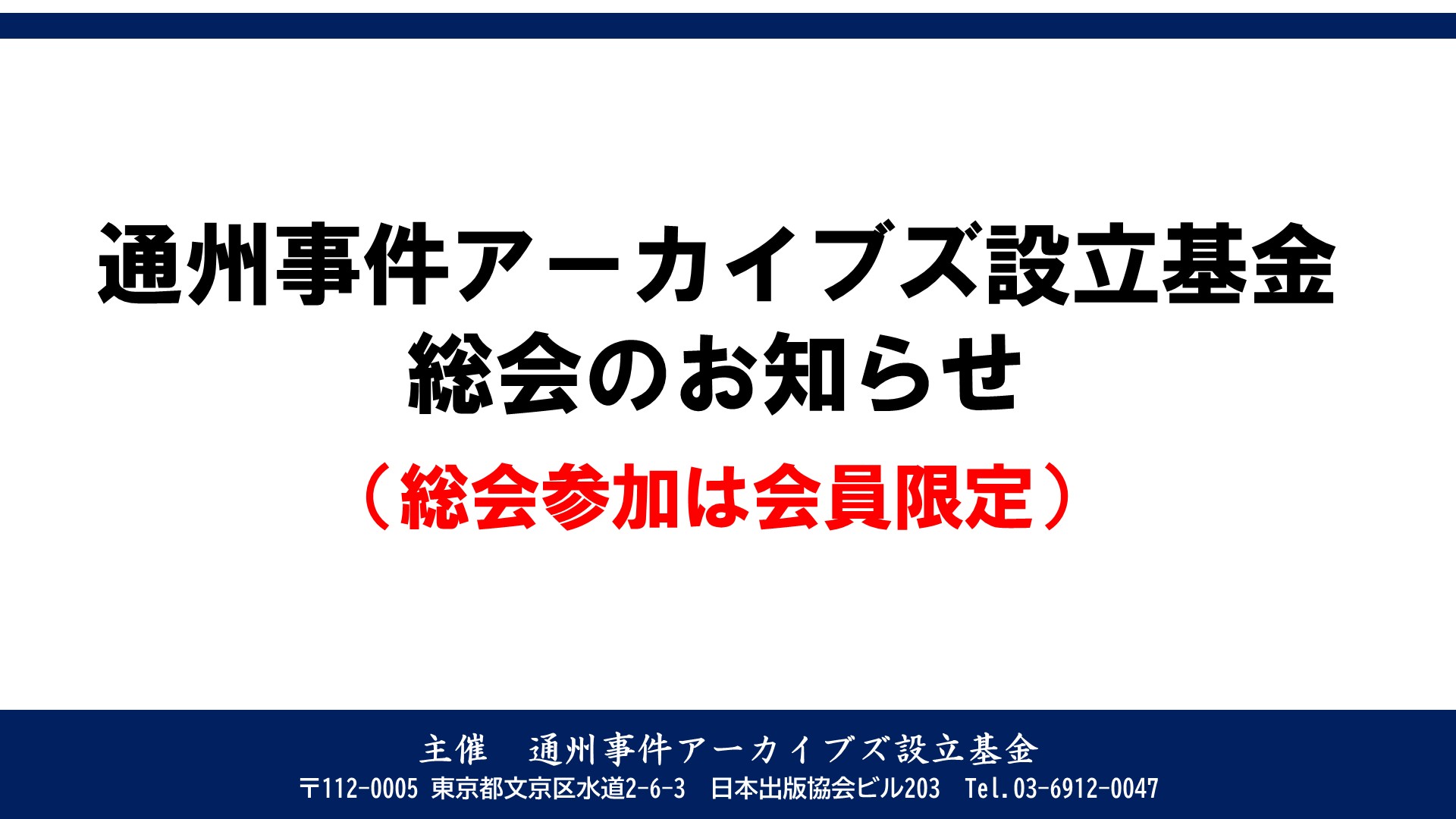 会員の皆様もご多忙とは存じますが、なにとぞ、総会へのご参加と積極的なご提案をお願いいたします。